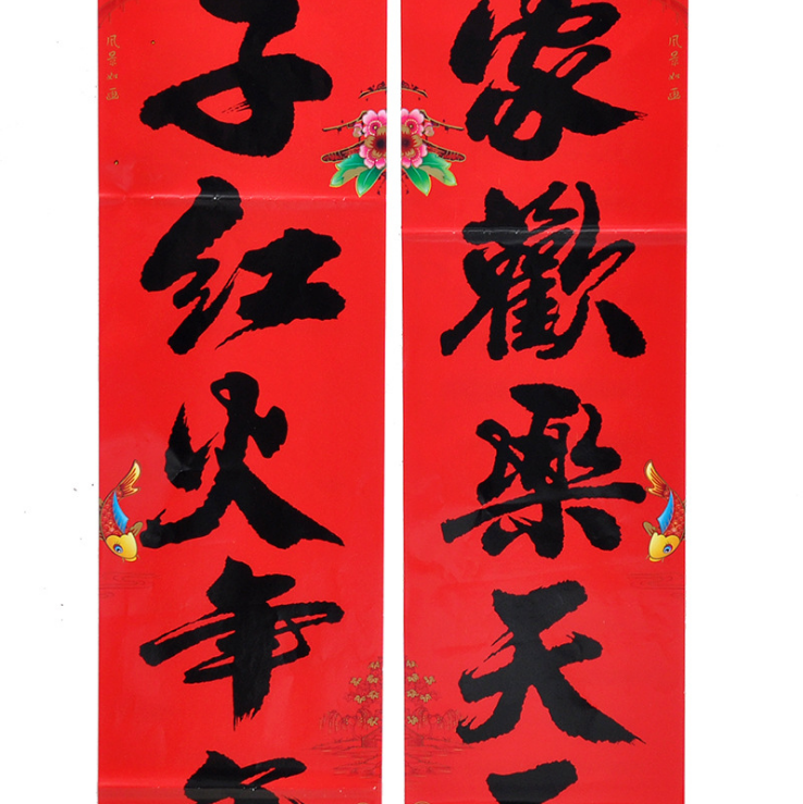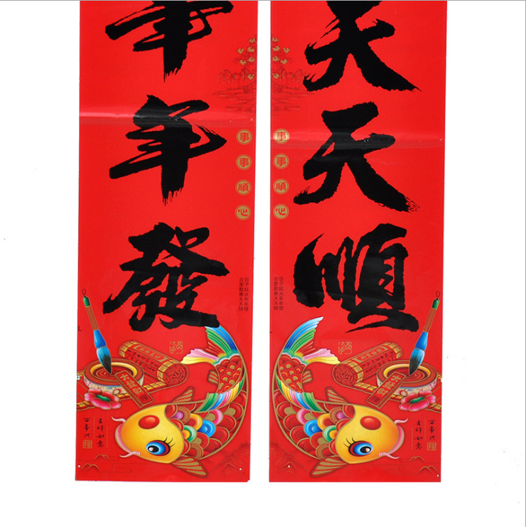 Year of the Rabbit black character couplet door spring couplet fish color printing calligraphy copper plate pair moving new home door sticker 1 3 meters 4 meters