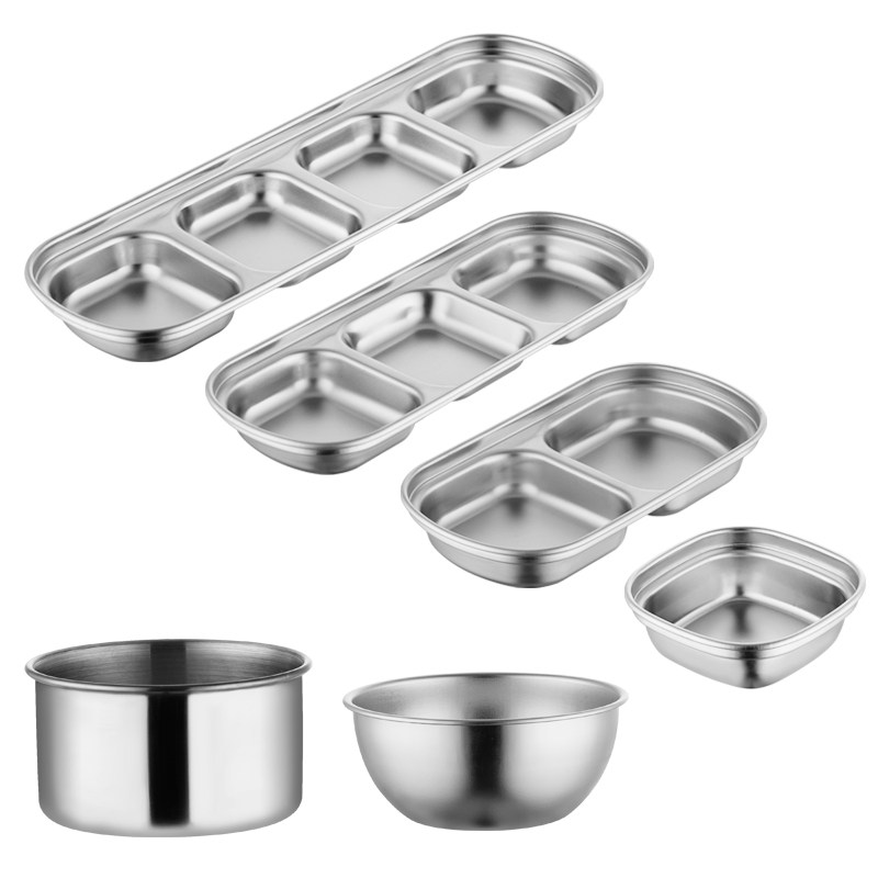 304 stainless steel seasoning dish multi-grid Korean dipping seasoning dish Hot pot soy sauce vinegar dish ketchup dish 234 grid