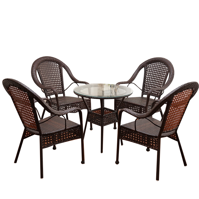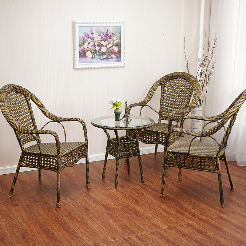 Rattan chair three-piece set balcony open-air outdoor table and chair garden courtyard rattan chair backrest chair small round table chair combination