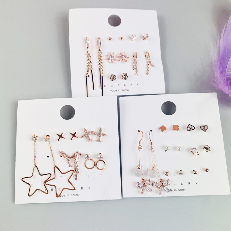 Korean Ornament Heart-shaped Pentagram Butterflies Fashion Ear Pin Fashion Ear Earrings Earrings Adorned with multiple sets