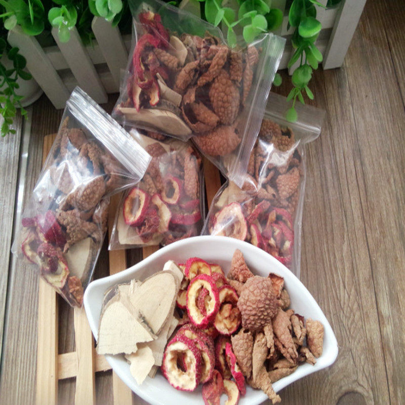 Hawthorn, Guanyin string, lychee shell, eucommia powder