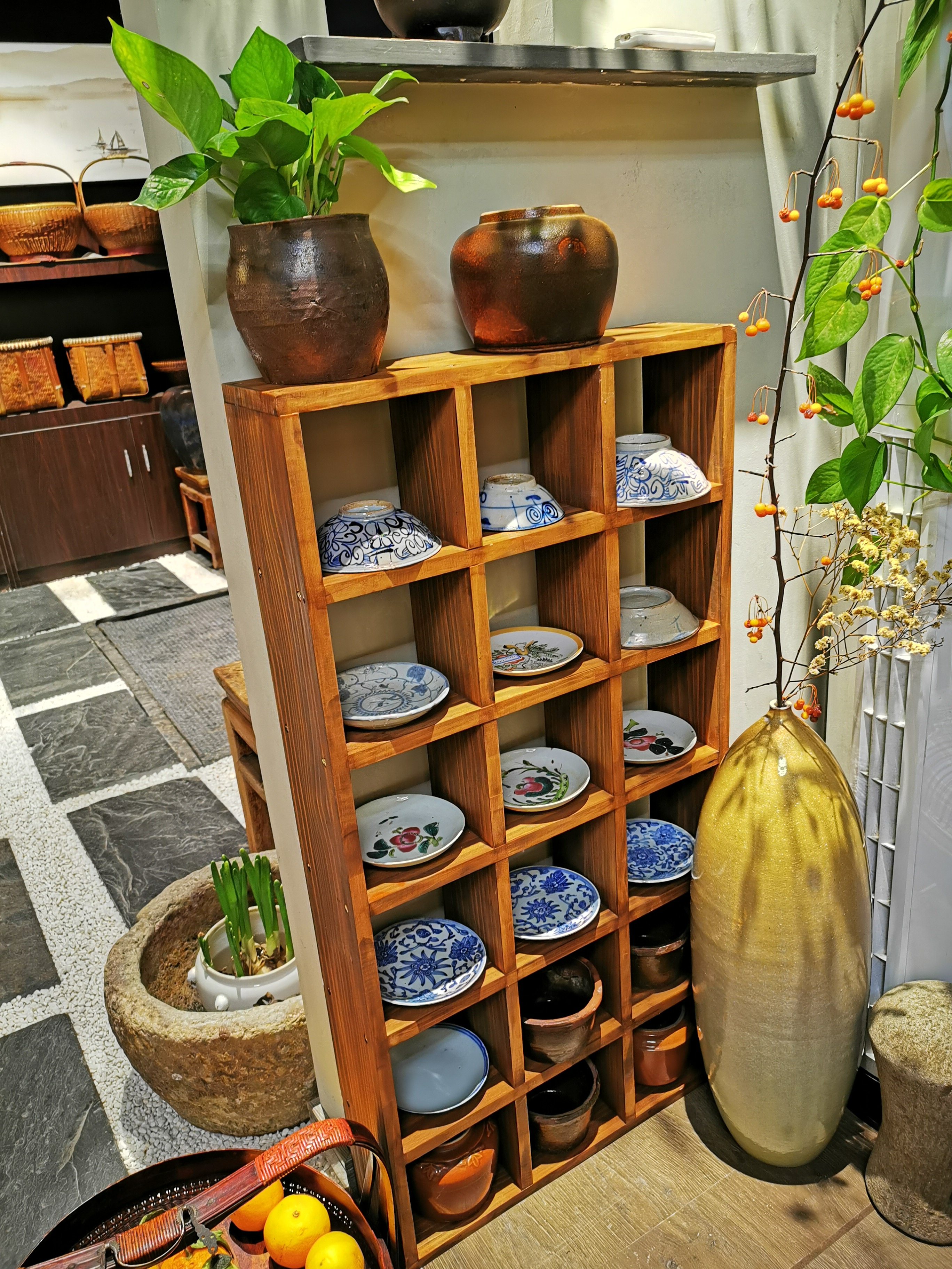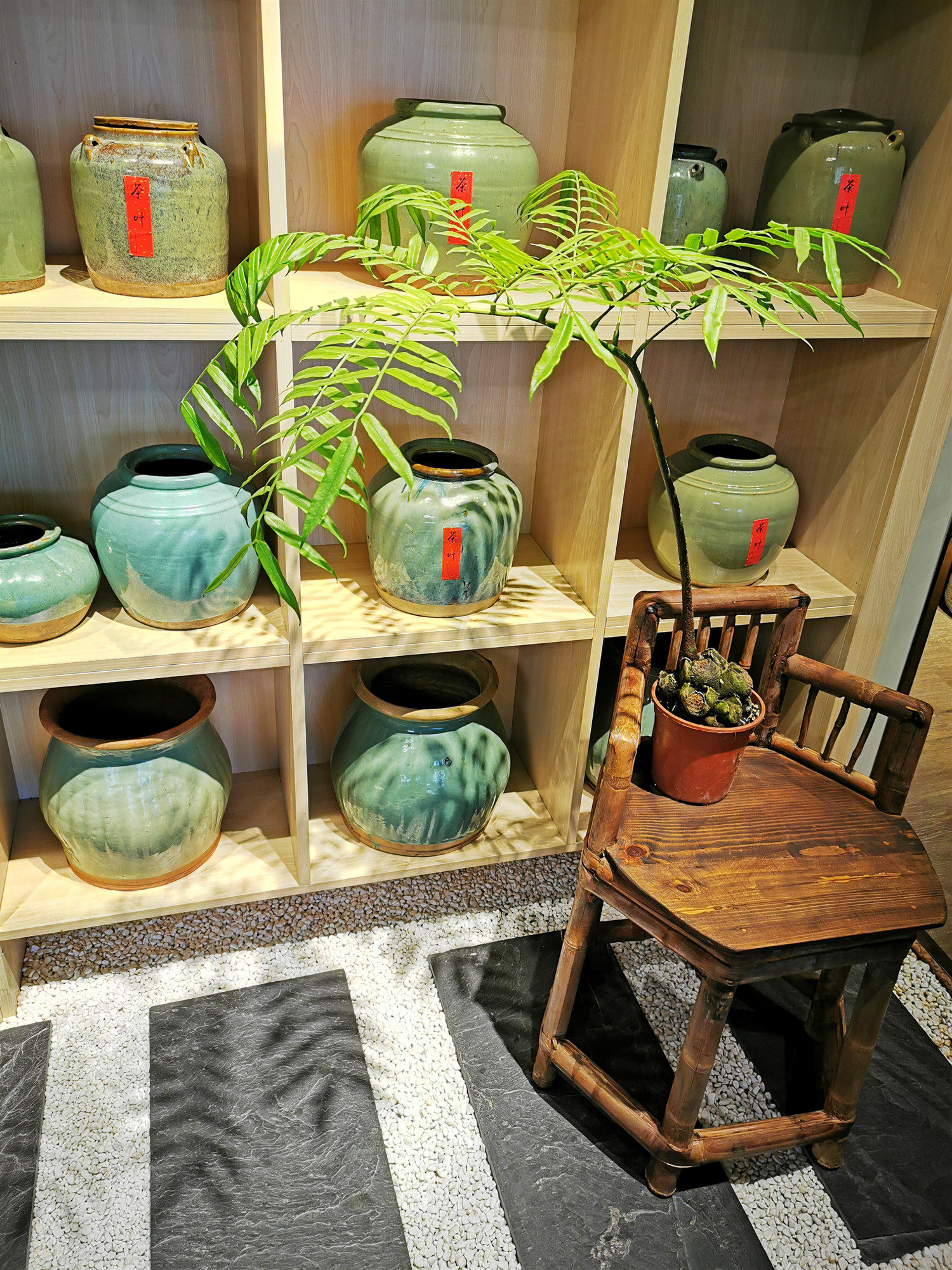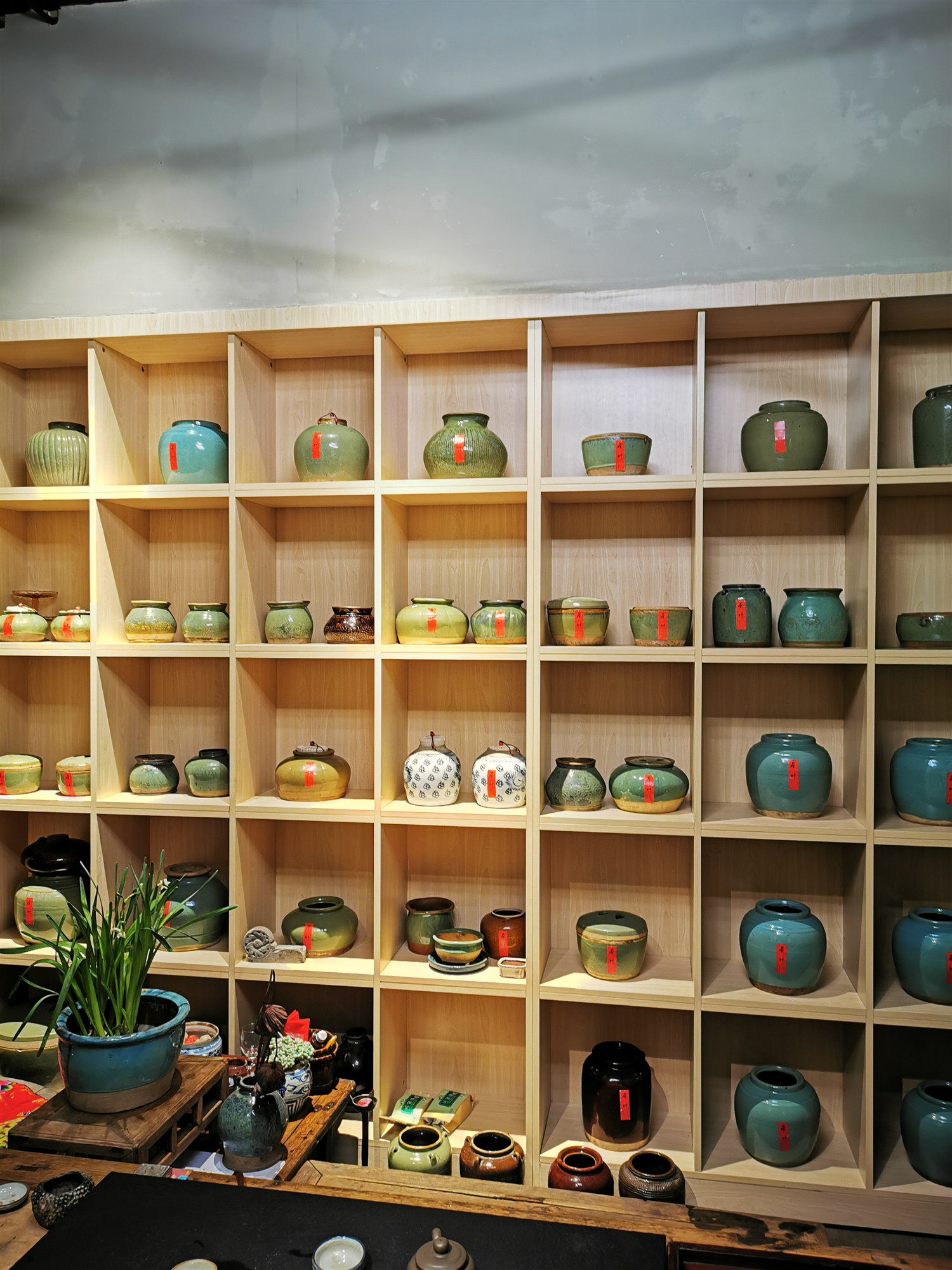 Cloth Yuanji Green glaze old pot Chinese decoration Antique bed and breakfast decoration green glaze vase