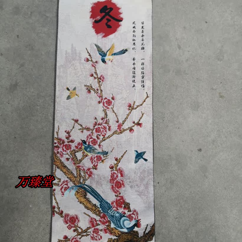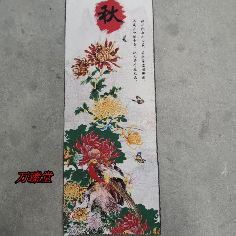 Gold silk machine embroidered brocade thangka retro Chinese classic cloth painting four screens living room study decoration spring, summer, autumn and winter