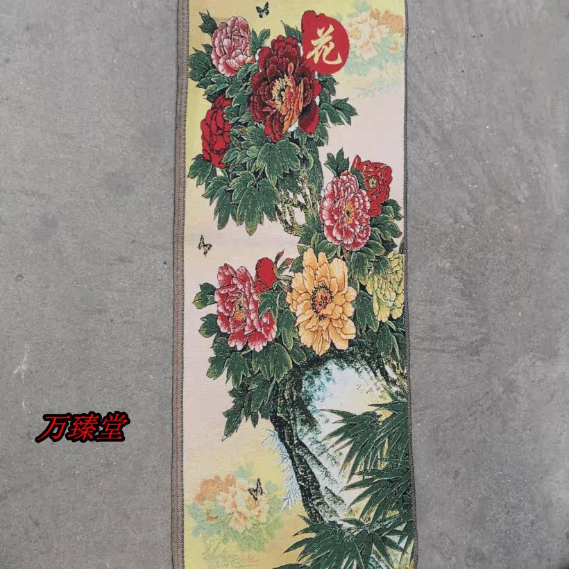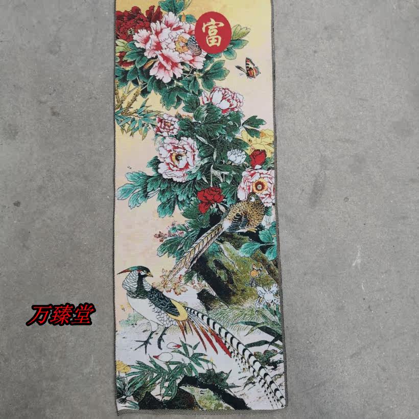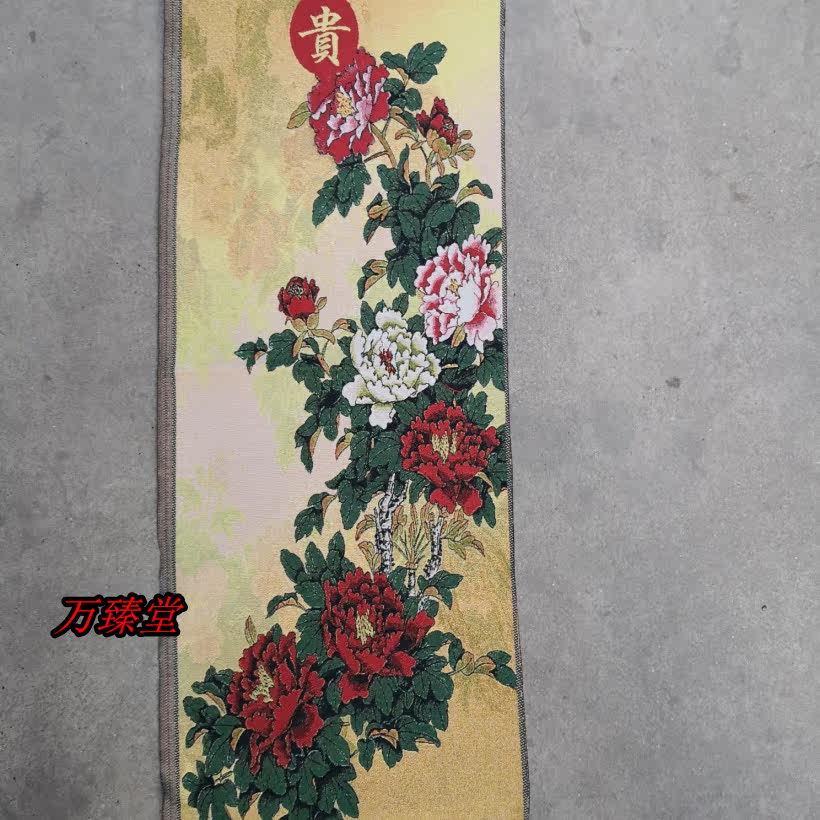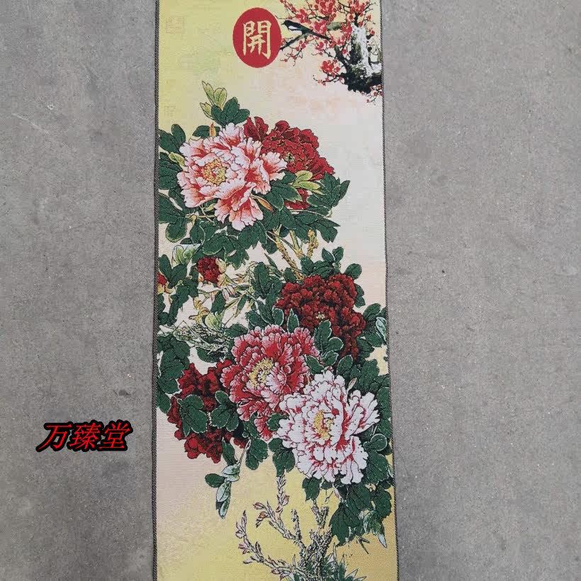 Golden Silk Machine Embroidered Brocade Golden Tang Card Retro Chinese Style Classic Cloth Painting Four Screen Living Room Book Room Decoration Flowers Open Rich