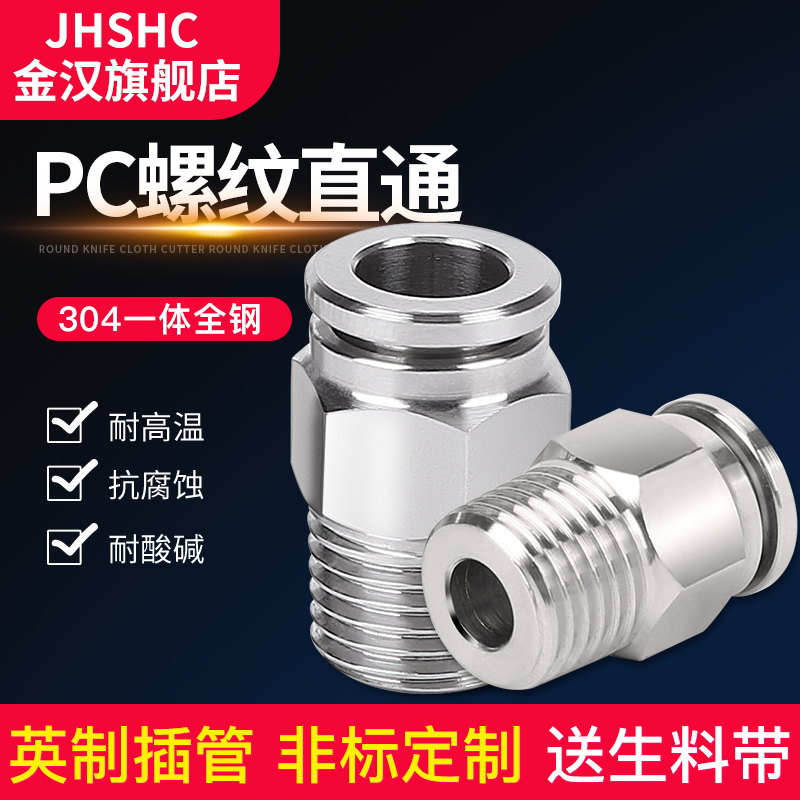 Pneumatic element joint 304 stainless steel quick quick-cut gas pipe quick-insert joint gas source speed-plug PC threaded straight-Taobao
