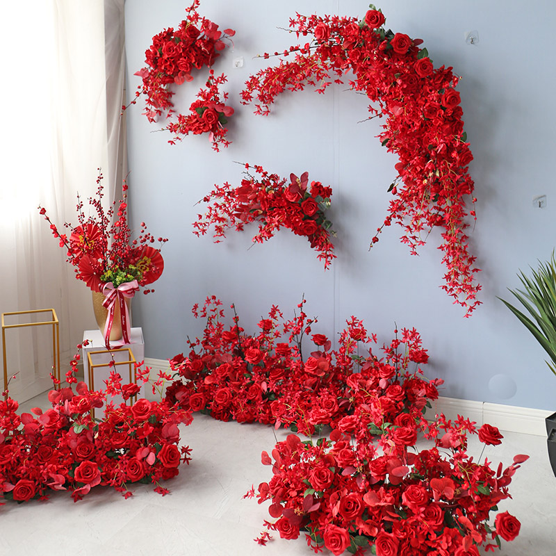 Wedding flower row simulation road leading flower Wedding decoration props Strip flower decoration Catwalk floor row flower Hotel window flower