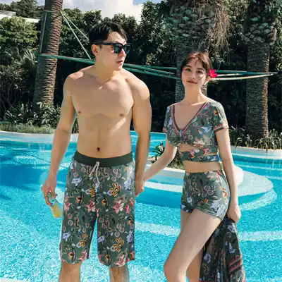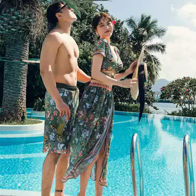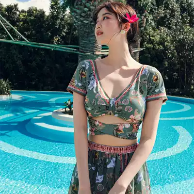 2021 new couple Beach resort swimsuit two-piece three-piece skirt floral small new hot spring Seaside swimsuit