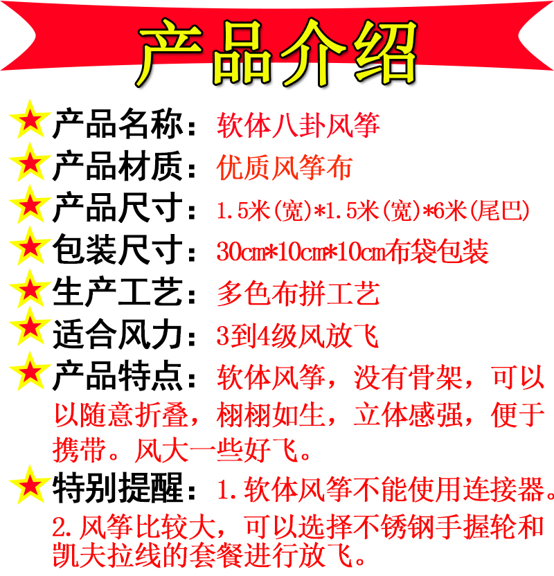 1 5m Soft Bagua-Orange(Kite only) 1 5m Soft Bagua-White (Kite only) 1 5m Soft Bagua-Red (Kite only) 1 5m White Bagua-2
