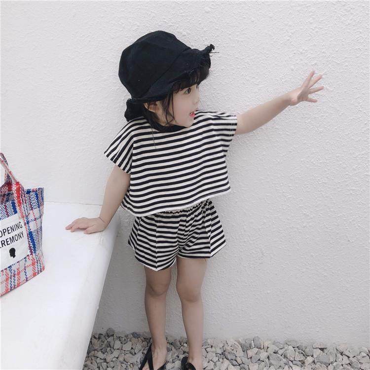 Girls' fashionable suits Western style summer new children's casual striped short-sleeved shorts two-piece three-year-old children's suit