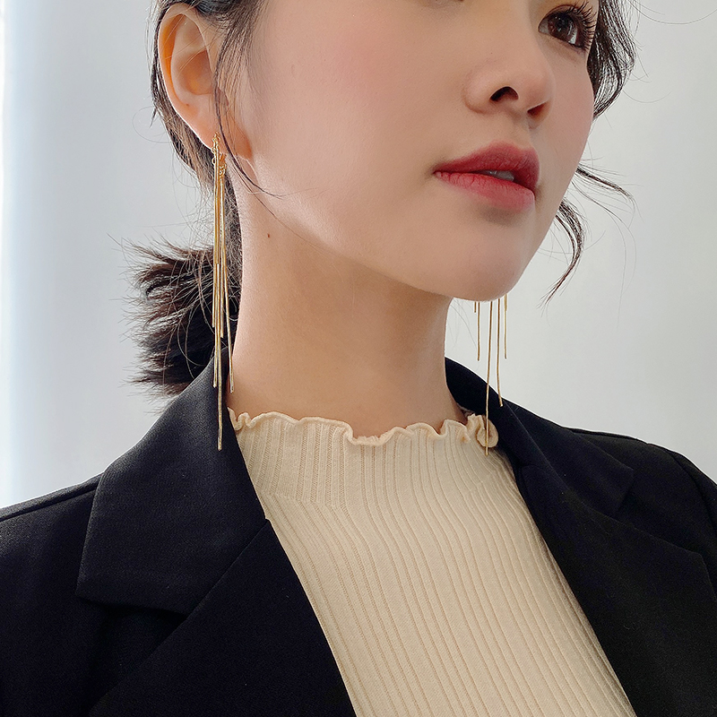 Personality long version exaggerated tassel earrings female face thin ear jewelry net celebrity celebrity style high-end sense ear acupuncture