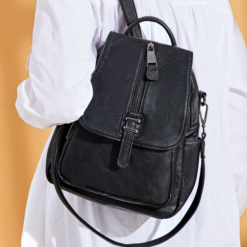 Real leather rear shoulder bag woman 2022 new Korean version 100 lap fashion wave burglar-proof dual-use cow leather soft leather lady bag