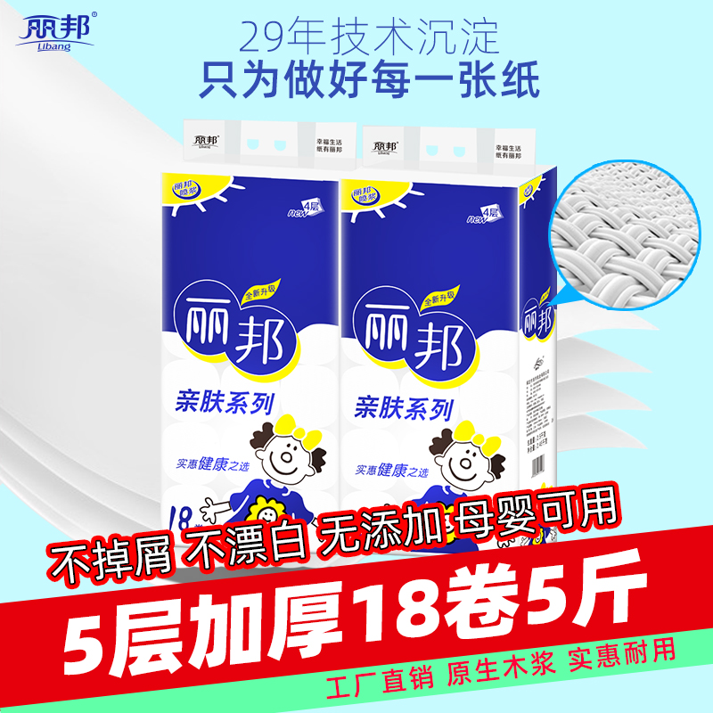 Libang 5 layers of maternity and baby toilet paper 18 large rolls 2500g home affordable paper towels roll paper coreless toilet paper towels