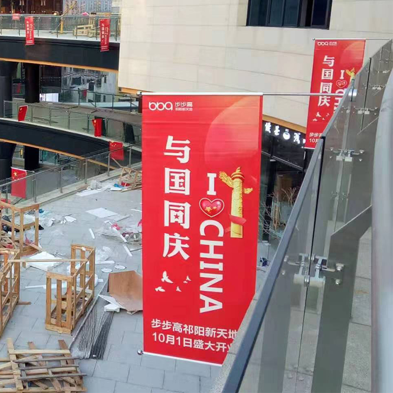 Flagpole on the side of the mall Glass guardrail hanging pole Stainless steel mall flagpole Glass hanging flagpole customized