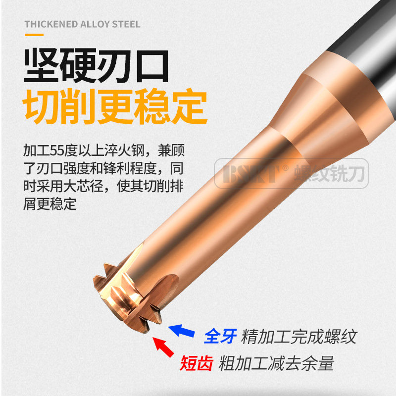 High-hard two-row tungsten steel thread milling cutter super hard tungsten steel milling cutter for hardened steel die steel left-handed