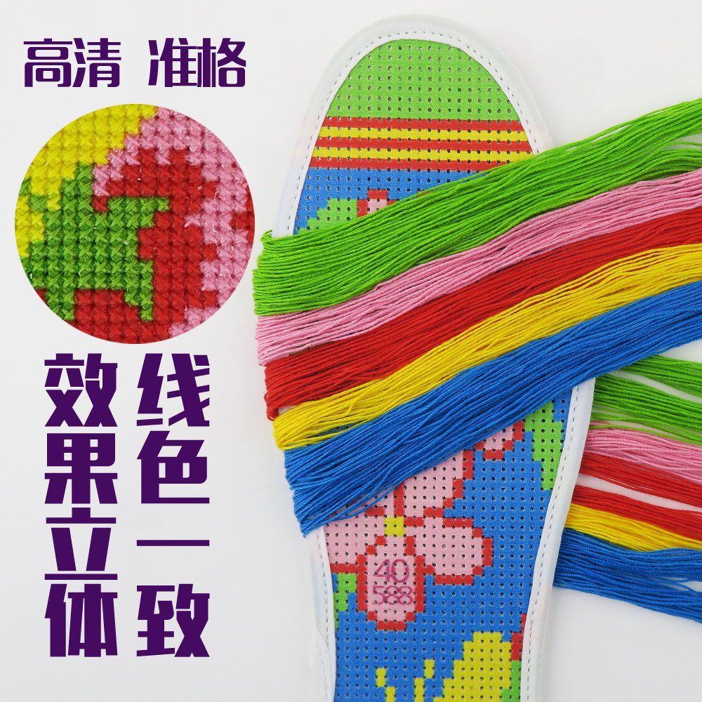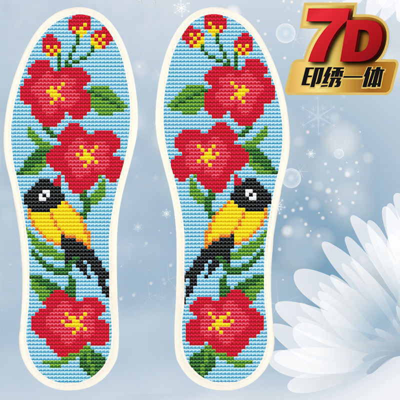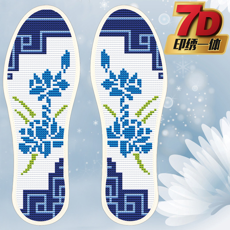 Cross embroidered insole pinhole printed semi-finished embroidered wedding festive hand-made breathable deodorant suction cotton fabric insole