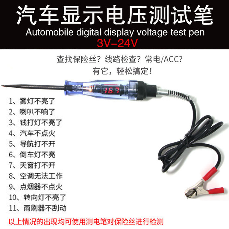 Car LED test light test pen 3v-24v line detection electrotest multifunction vehicle special maintenance number of inspection power pen