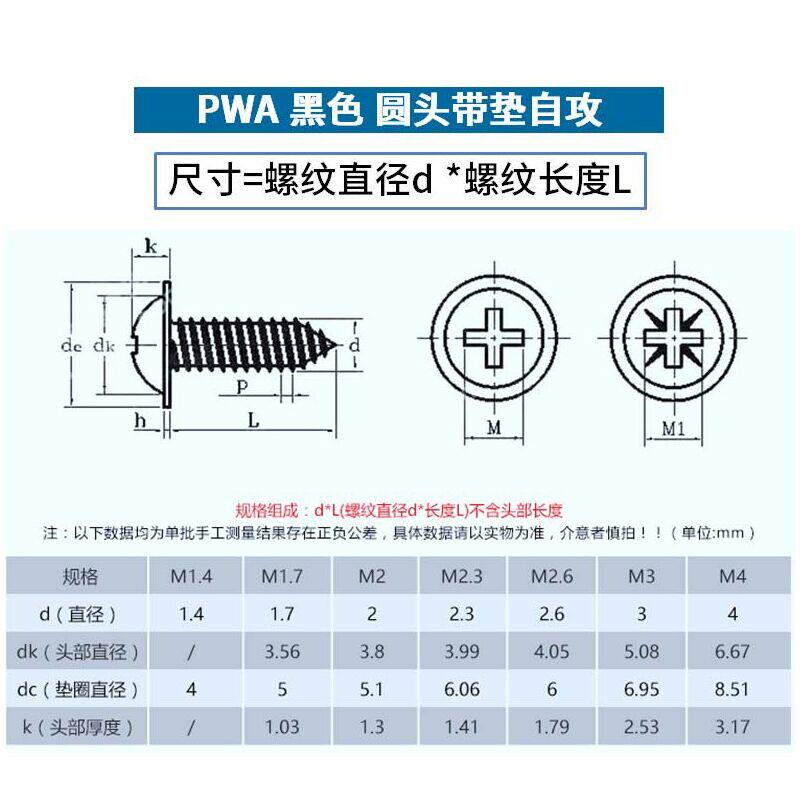 PWA black round head with cushion self-tapping screw M2 3M2 6M3M4 6M3M4