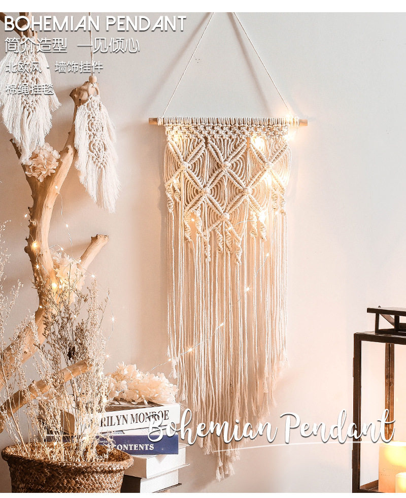 Nordic Leaves Handmade Woven Cotton Thread Tapestry INS Wedding decoration Bedroom bedside wall-mounted Living room tapestry
