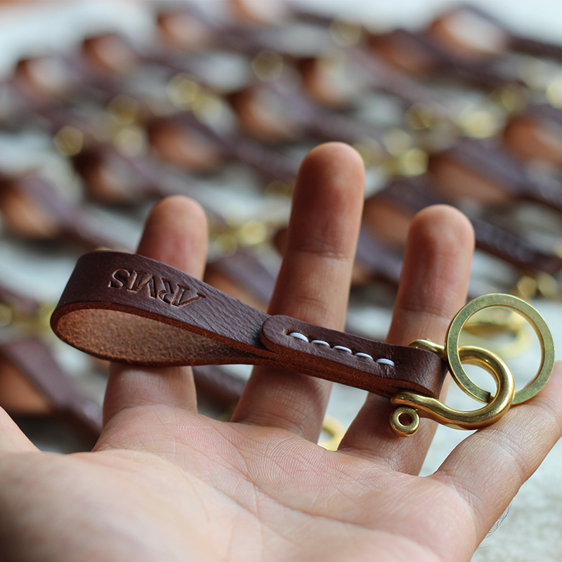 Handmade custom leather logo engraved gilded keychain enterprise cooperation souvenir pendant DIY