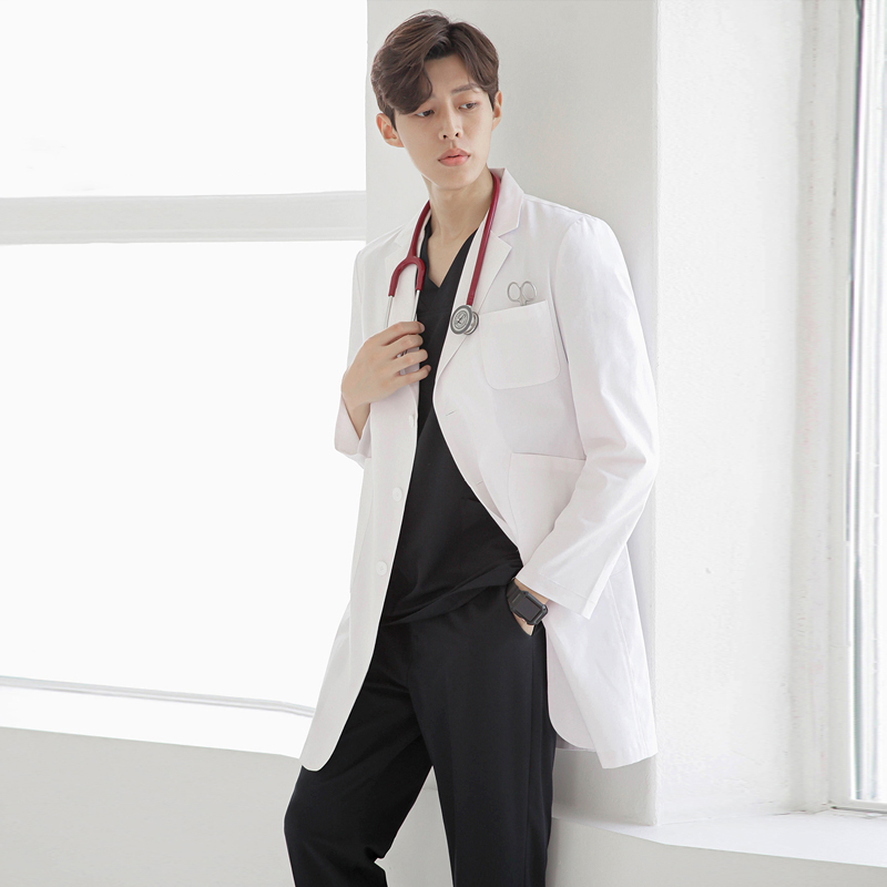 Han Edition High-end Plastic Hospital Doctor Medium Long-sleeved White Coat Long-sleeved Men and Women Oral Dental Medical Clothing