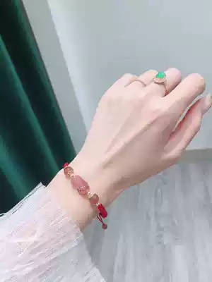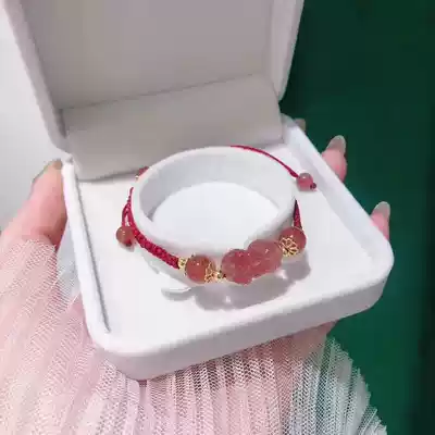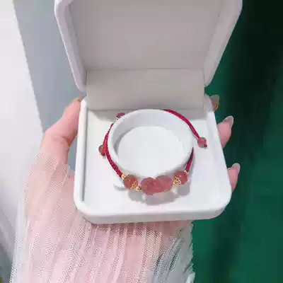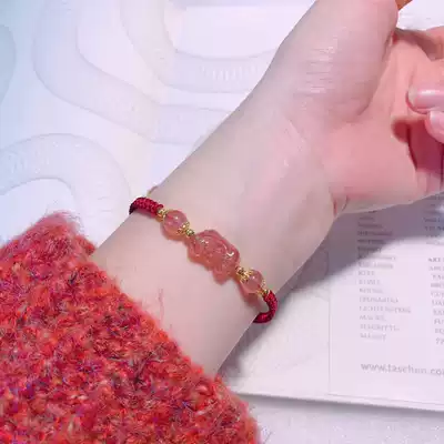 Hong Kong Zhengsheng Silver jewelry Sweet little fresh strawberry crystal Pixiu bracelet Female Lucky charm Wang Peach Blossom this year of life