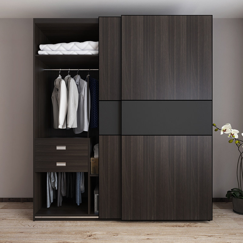 Kono home wardrobe Nordic sliding door Modern simple bedroom two-door wardrobe sliding plug-in push-pull cabinet customization