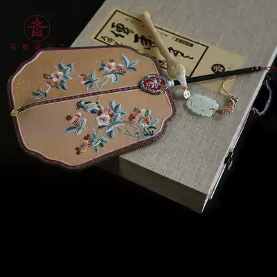 Flower Jincheng imitation Forbidden City silk double-sided Su embroidery Palace fan Head fan Chinese style gift embroidery Group fan traditional fan