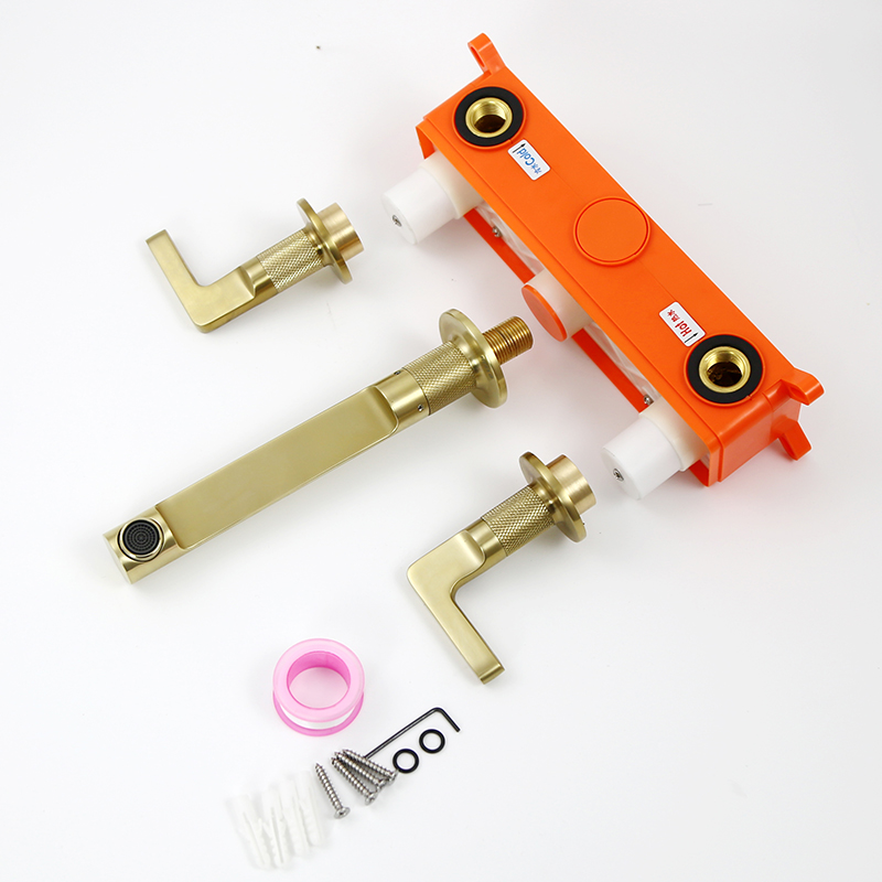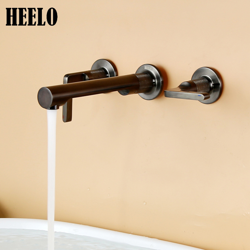 Double take the wire drawing gold into the wall-type face basin tap concealed hot and cold washbasin home O style gun black