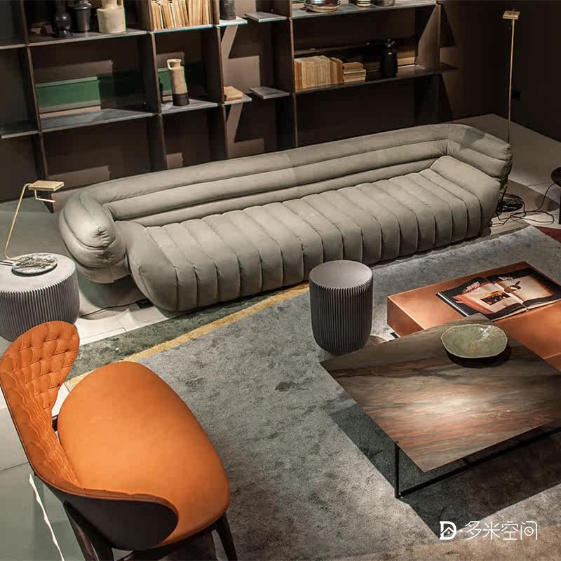 Baxter sofa hall straight row fabric leather imported nubuck leather large sofa Italian style modern simplicity