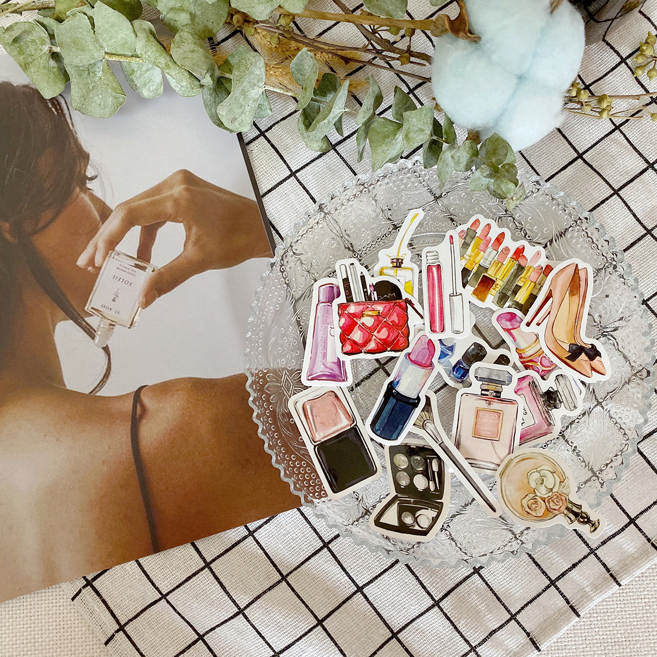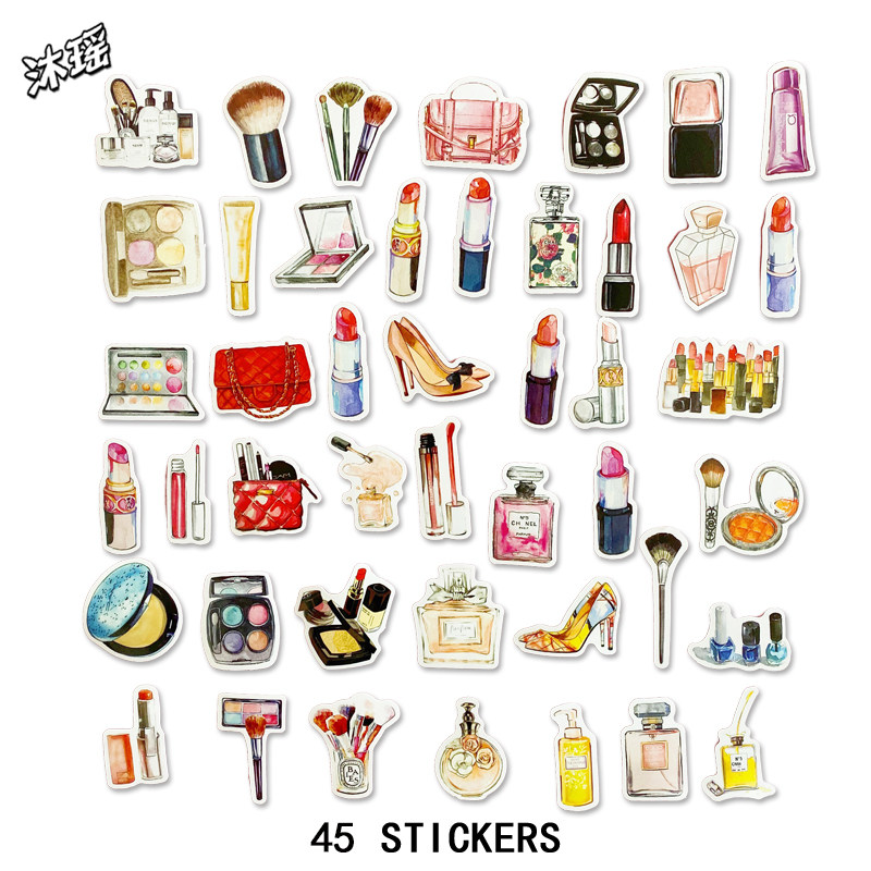 Handbill sticker 45 sheets of hand-painted fashion Fragrance mouth red High heel Shoes Cosmetics Material Mobile Phone Diy Waterproof Stickers
