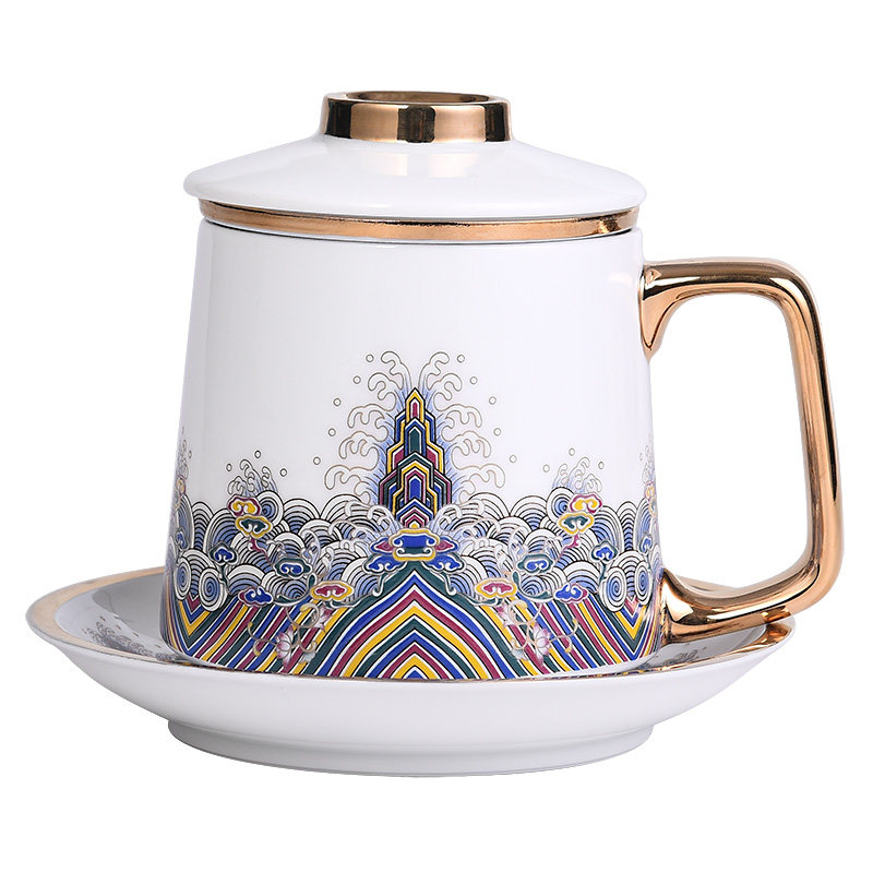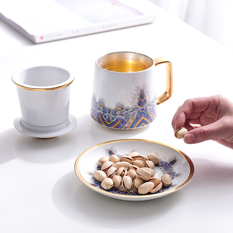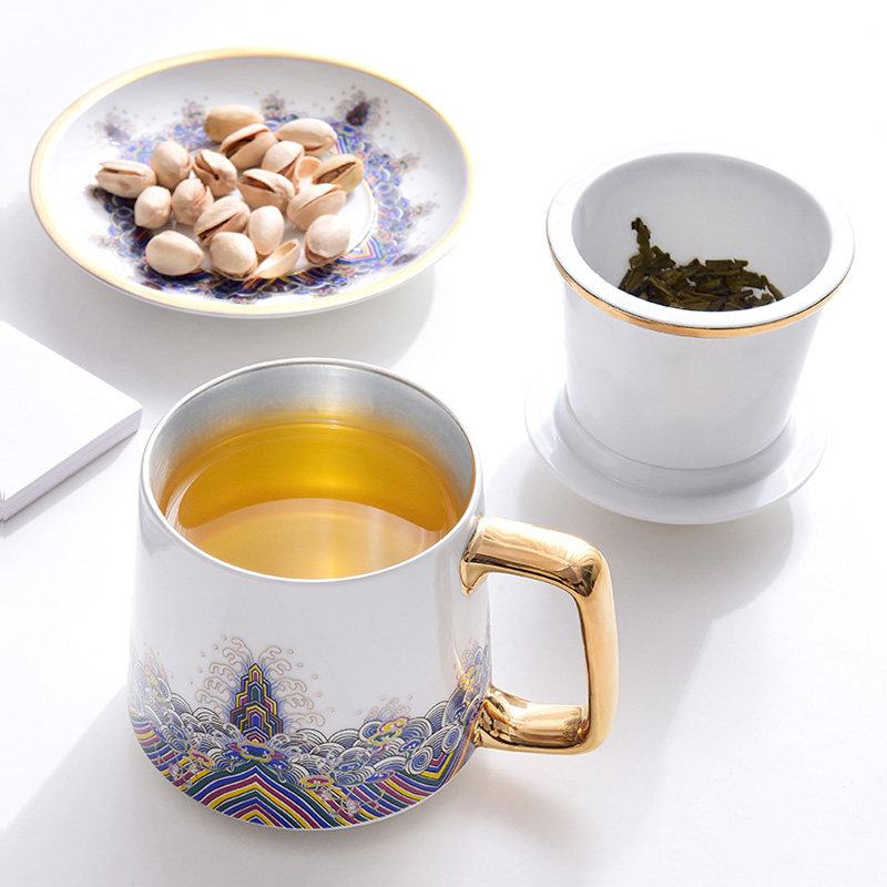 Ocean Wave Jiangya Silver Four-piece Office Cup Baoxiang Flower Basket Color Baoxiang Flower Yellow Baoxiang Flower Red