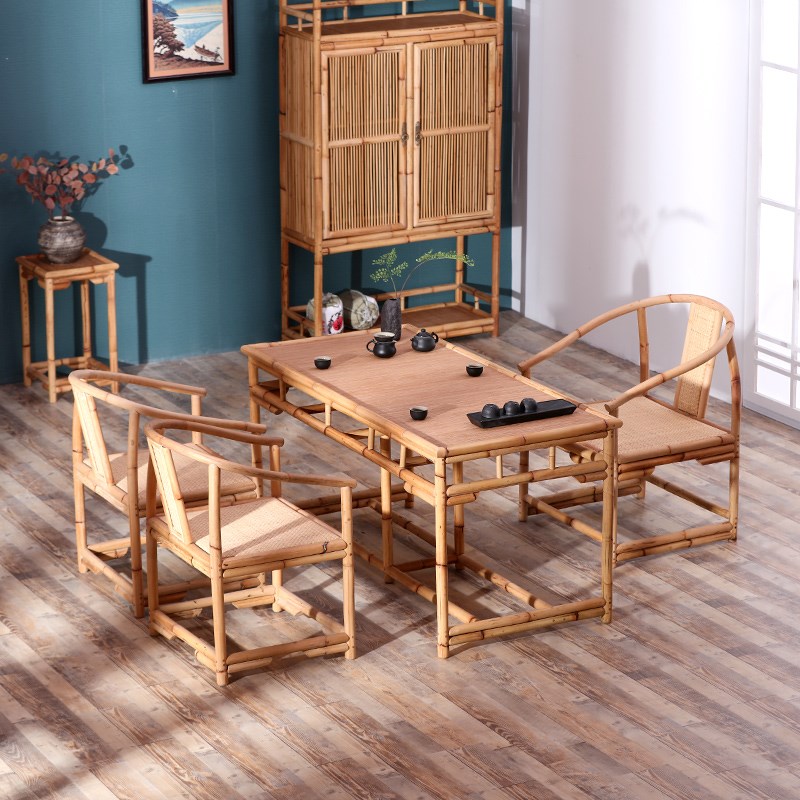 Tea table and chair combination Chinese Zen tea ceremony furniture modern simple bamboo rattan tea table tea room home stay tea art long table