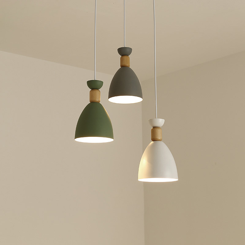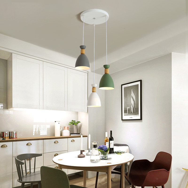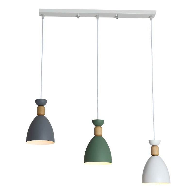 Nordic ins macaron dining room chandelier three-headed simple modern bar creative personality solid wood dining room lamps