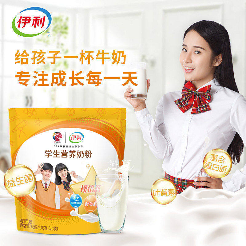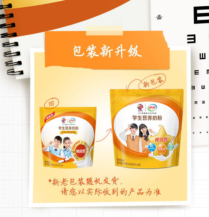 Yili Student Nutritional Milk Powder 400g * 2 Bags Teenagers High School Elementary School Students Milk Powder Flushed drinks Breakfast pouch clothing