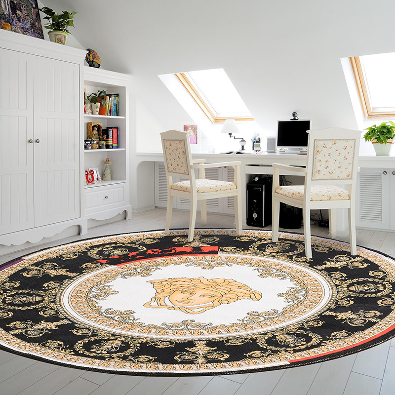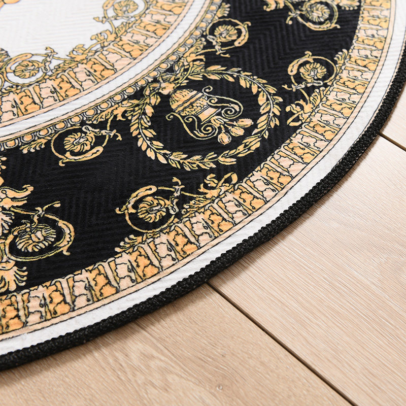 Round floor mat Multifunctional coffee table mat European-style carved velvet carpet home living room bedroom cushion yoga mat