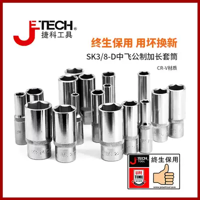 Jike tool Zhongfei 3 8 inch hexagon metric long socket medium ratchet wrench long sleeve auto repair
