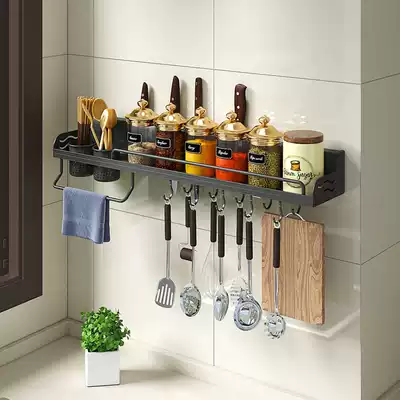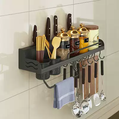 Black nail-free kitchen and bathroom shelf Space aluminum kitchen knife rack Wall-mounted seasoning tank rack Hanging hook kitchenware supplies storage