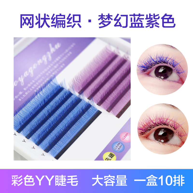 0 05Y Type Dazzling Blue Purple Y Type Woven Grafting Eyelash Mix Color Yy Second Flowering Super Soft Memascara-Taobao