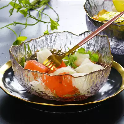 Komei Wo Japanese Irregular Glass Bowl Phnom Penh Hammer Fruit Vegetable Salad Bowl Creative Large Dessert Bowl
