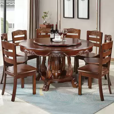 Chinese style solid wood round dining table with turntable 10 people with large round table table table table table round dining table and chair combination