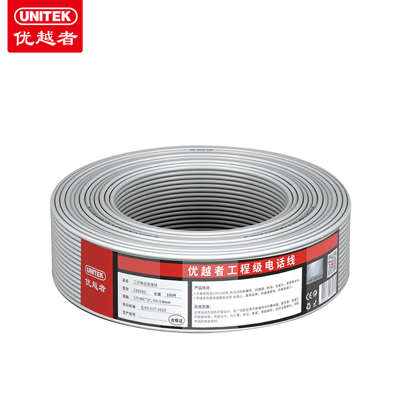 Superior 2c Telephone line 2 Core single Unit Oxygen-free Copper Wire Core 0 4mm Landline Phone Connecting Line 100 m