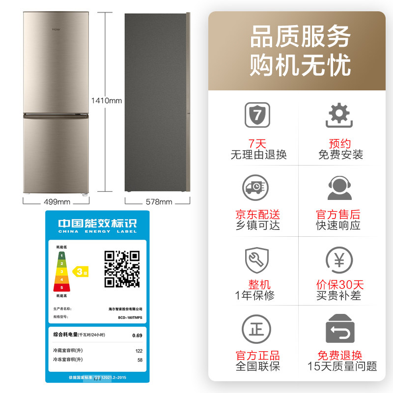 Haier small refrigerator home small 180L double open three - door rental accommodation for the official flagship store of the refrigerator