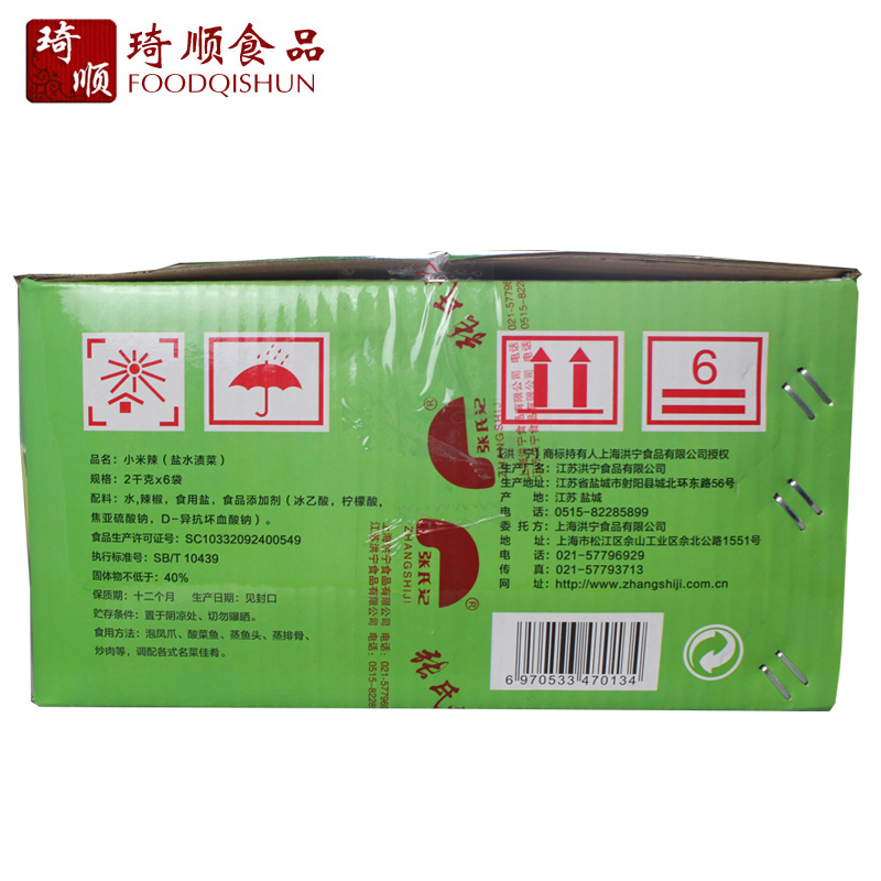 (whole box) Zhang's notes Xiaomi spicy 2kg * 6 bags of salt water stains vegetable wild mountain pretzels with peppers with chopped peppers