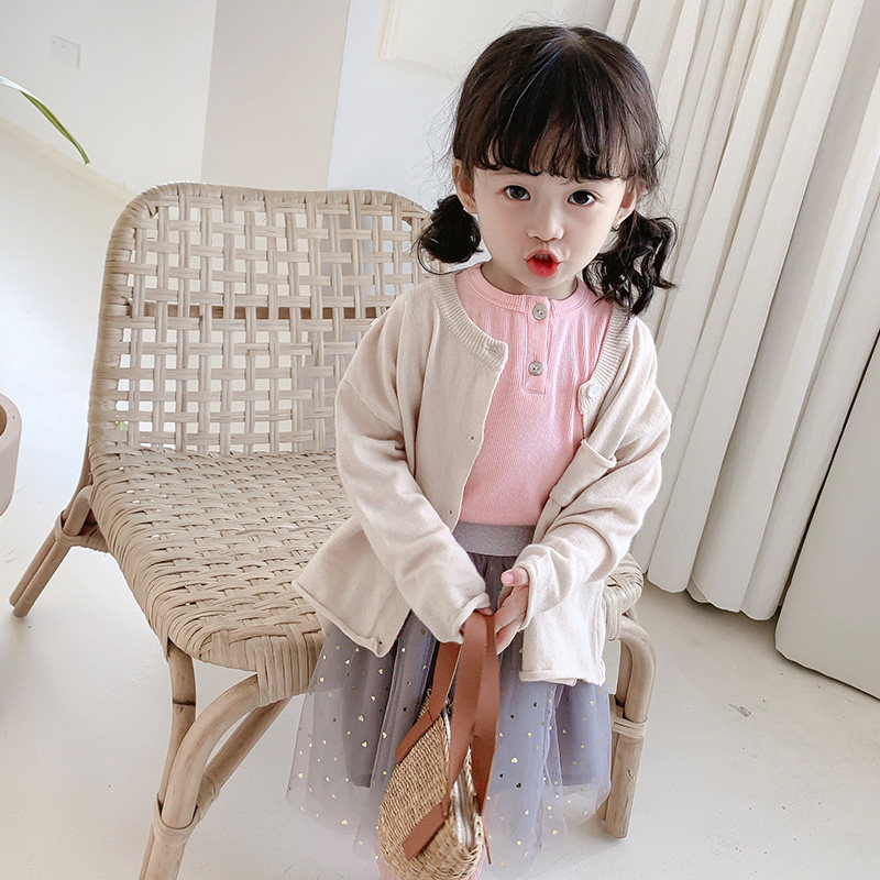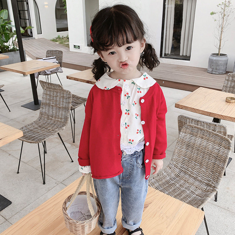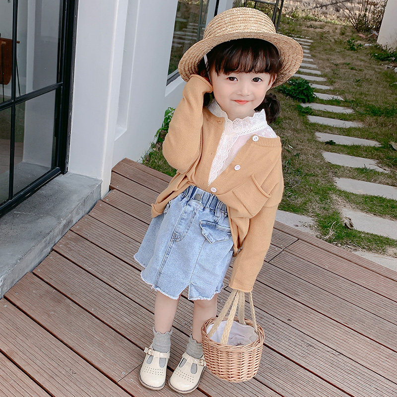 2022 girls dress for spring clothing new 100 hitch Korean version children knit cardio-hoodie jacket female baby clothes