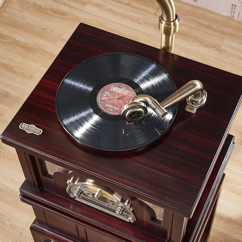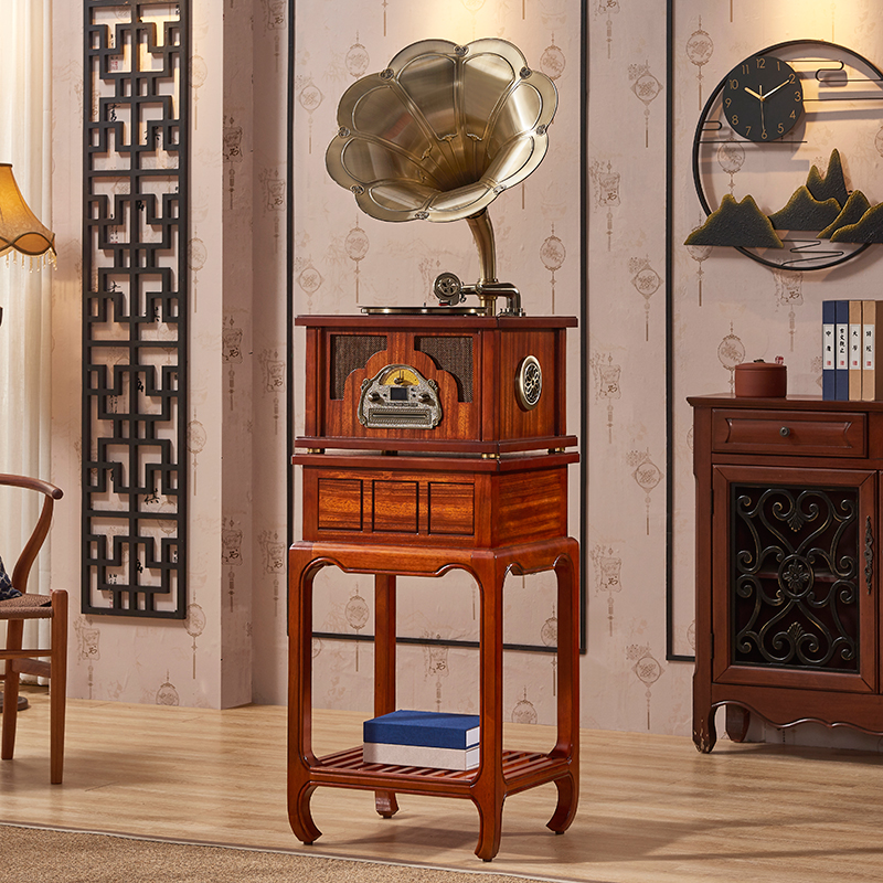 Santa Lina New Chinese Solid Wood Grammaine Grammater Living Room Vintage Old Black Gel Record Machine Trumpeter Antique Electric Record Machine