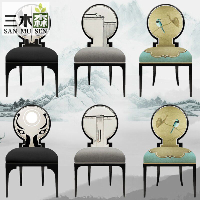 New Chinese dining chair modern Chinese dining chair solid wooden chair chair chair Zen high back chair furniture customization