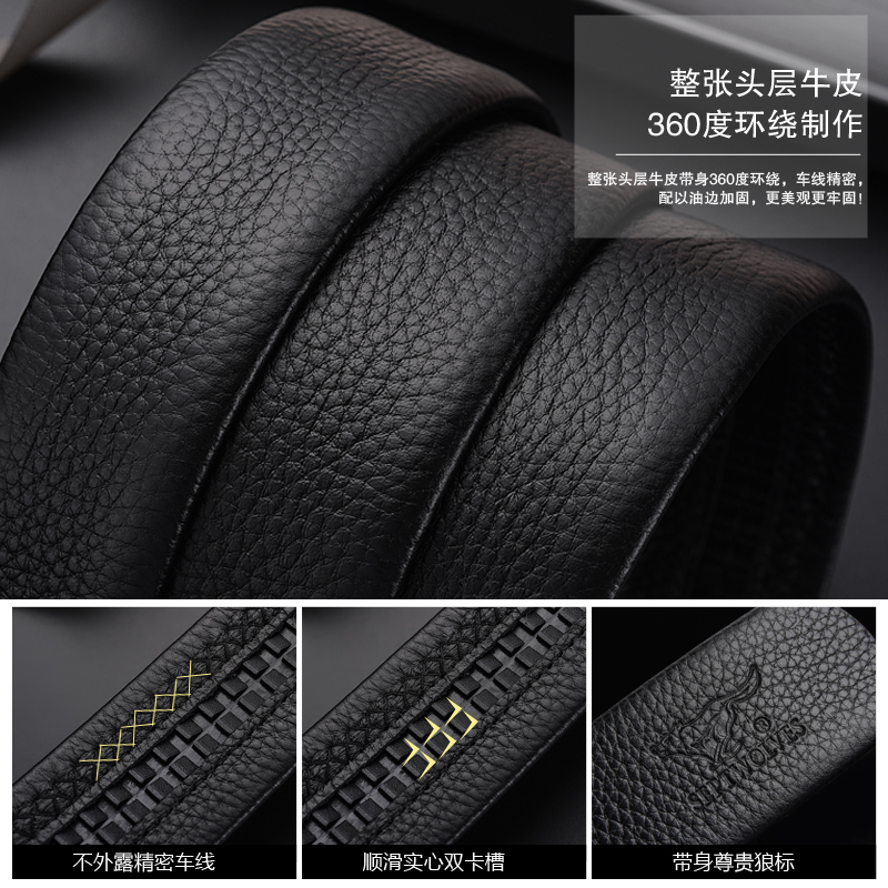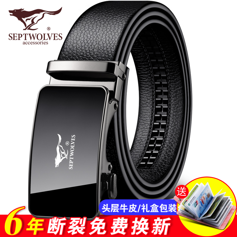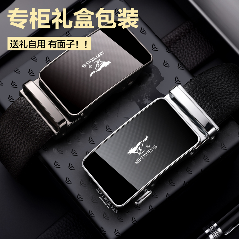 Seven wolves men's leather strap genuine leather automatic buckle belt Youth Korean version Tide Pure Cow Leather Mid Young Casual Pants Strap