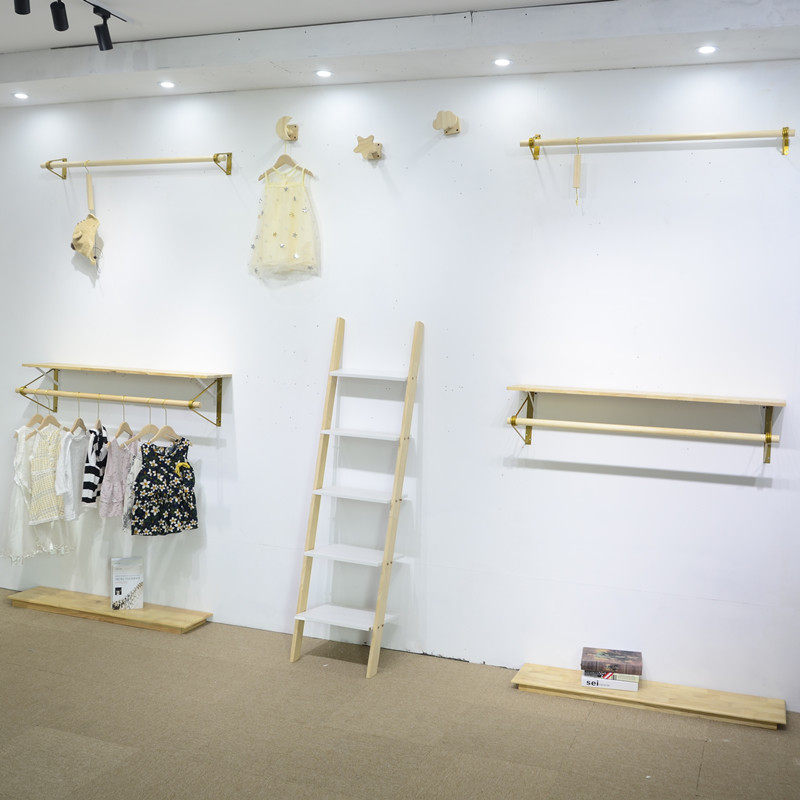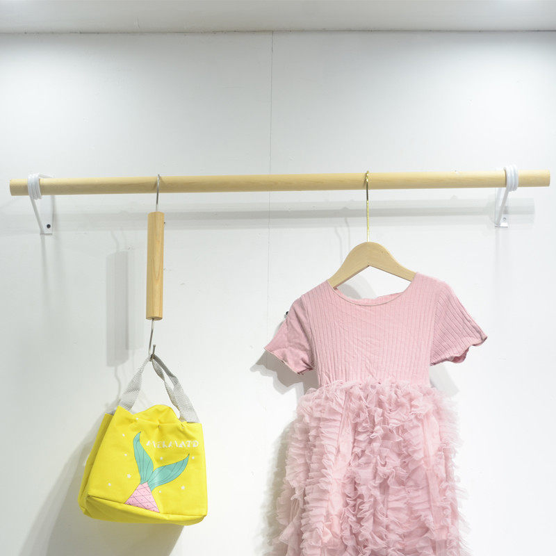 INS Clothing Store Children's Clothing Display Wood Original Wood Color Hanging Clothes Rod Children Upper Wall Positive Side Hanging Hanger Wall Hanging Rack