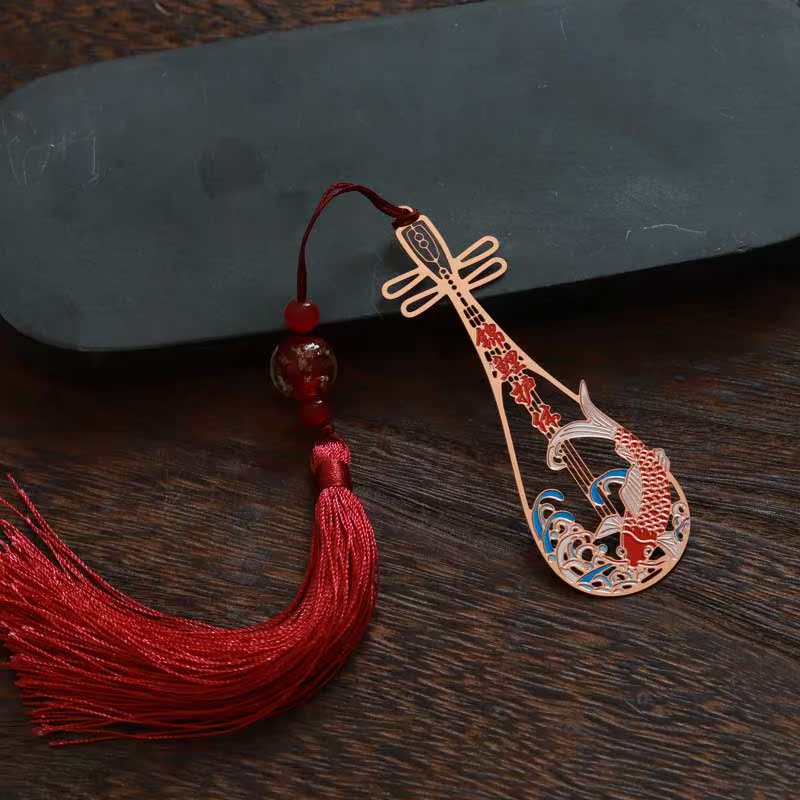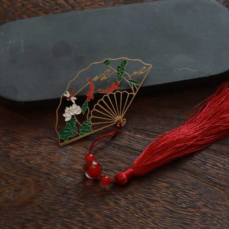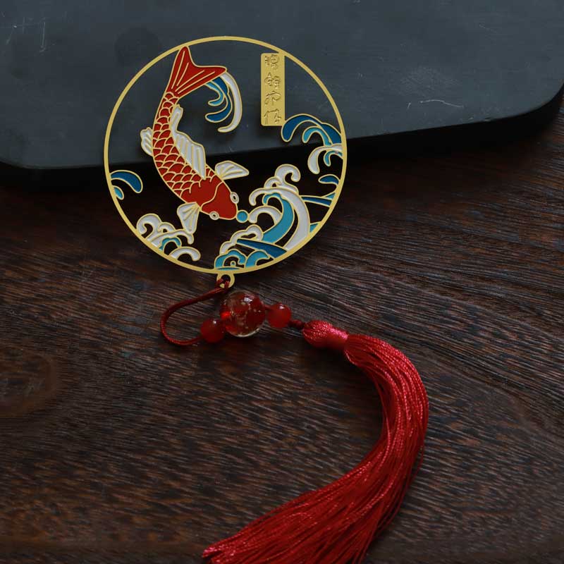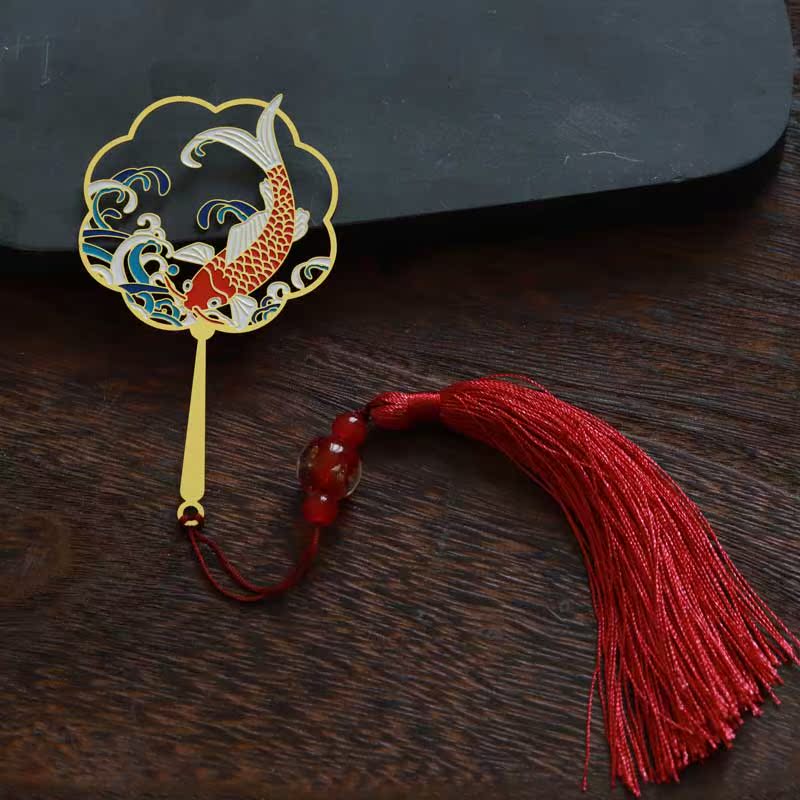 Koi good luck New Year lettering group fan metal brass bookmark custom Chinese style classical tassel luminous pendant literary creative gift lettering custom small fresh student gifts