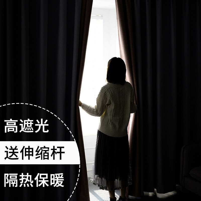 Blue and yellow splicing curtains 2021 New shading cloth non-perforated installation Rod a complete set of windows free of installation splicing